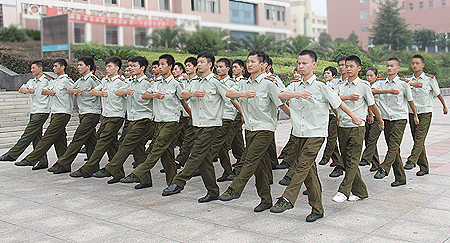 按照自愿报名、保卫处筛选的程序,我院从2010级和2011级学生中选拔了68名学生组成学生军训教官团,于3月开始利用早操时间进行训练。8月5日,他们开始了为期12天的集训。