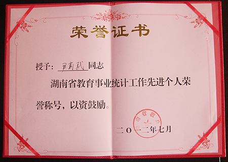 近日,根据湖南省教育厅下发的《关于表彰湖南省教育事业统计工作先进单位和先进个人的决定》(湘教通〔2012〕435号)文件,我院被评为2011年度“湖南省教育事业统计工作先进单位”,尹莉武同志被评为“湖南省教育事业统计工作先进个人”。(宣传部)