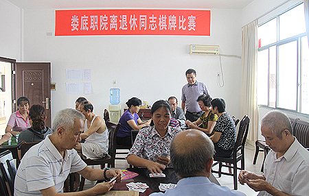 为丰富离退休老同志的精神文化生活,营造良好的文化氛围,促进老同志的身心健康,9月12日-13日,我院组织举办了2012年度离退休老同志棋牌比赛。院长杜祥培在组织部刘高永、离退办刘清平的陪同下来到比赛现场看望了老同志并与老同志们亲切交谈。