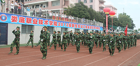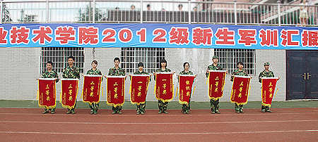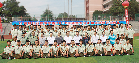 院长杜祥培在副院长刘自斌、军训总教官彭军陪同下,巡视了我院2012级新生队列。随后,各队列以昂扬向上的精神面貌、整齐的步伐、挺拔的军姿依次通过主席台,接受了领导们的检阅。学生军训教官进行了精彩的队列表演。