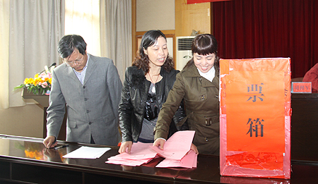 会议第二阶段为换届选举大会。由九三学社娄底市委专职副主委梁卫平主持。曾毅刚首先宣读九三学社娄底市委对九三学社娄底职院支社的换届批复。全体会员以举手表决方式通过选举办法,监票人、计票人名单。工作人员宣读支委候选人简历介绍后,与会社员以无记名投票方式选举支社委员会委员。九三学社娄底职院支社有社员29人,实到27人,收回选票27张,有效选票27张。