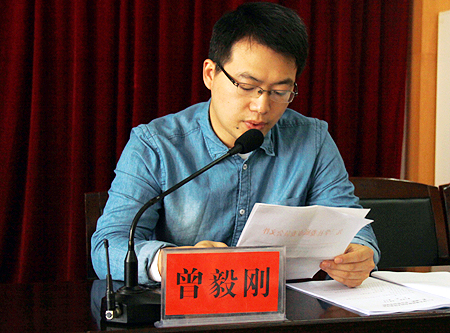 曾毅刚宣读九三学社娄底市委对九三学社娄底职院支社的换届批复