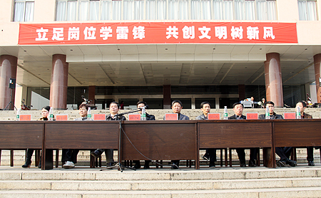 为传承和弘扬雷锋精神,努力实现学雷锋活动的时代化和常态化,使雷锋精神内化为广大青年学生的自觉追求和实际行动,3月7日下午,由院团委和学工处主办的纪念毛泽东同志题词“向雷锋同志学习”50周年暨志愿服务月活动启动仪式在学院文化广场隆重举行。出席仪式的领导有院党委副书记欧友佳,副院长刘自斌,工会主席曾国基,学院老领导彭建胜,学工处处长张一军,院团委书记欧芳,学院关工委领导朱建国、邓美平及贺汉雄。我院各系学工主任、团总支书记、辅导员和学生参加了活动。启动仪式由刘自斌主持。