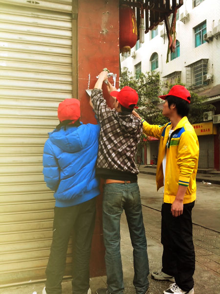 3月24日上午,12数控大一班全体同学在班干部带领下前往金谷市场,开展除牛皮癣活动,希望用自己的努力,为保持市容的美丽与整洁出一份力。大家共分为3个小组,在明确了各自所负责的区域后,投入到了一场轰轰烈烈的“牛皮癣”大清除当中,有的拿着小铲子将残留的纸屑碎彻底清除干净,有的则是清理地上的纸屑。大家在清理的过程中不怕脏不怕累,努力把墙上的小广告清理得干干净净。看着焕然一新的墙面,同学们的脸上露出了笑容。(机电系)