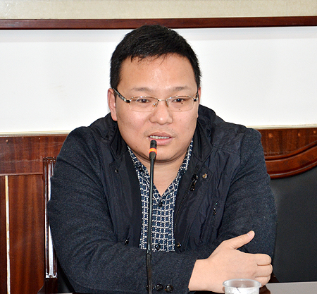 大埠桥街道办事处党工委副书记张勇介绍大埠桥基本情况