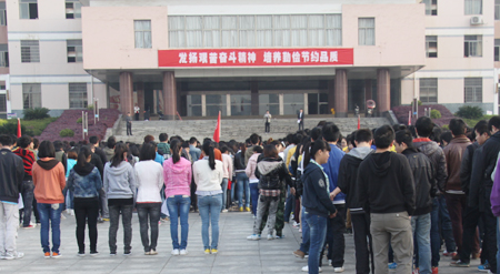 4月7日清早,我院在文化广场举行“发扬艰苦奋斗精神,培养勤俭节约品质”为主题的“光盘行动”启动仪式。副院长刘自斌、学工处处长张一军、副处长江国元、戴志鹏,系部学工主任和辅导员及全院学生参加了启动仪式, 张一军主持启动仪式。