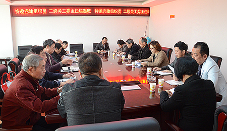 刘高永向大会报告我院“聘请离退休老党员担任特邀党建组织员”工作有关情况。谢丽珍说明我院党员发展情况。朱建国就建立二级关工委工作发表讲话。