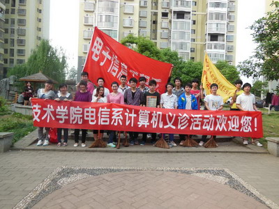 4月28日下午,电信系11计应班、12软件班、12计网班的志愿者们在系团总支的组织下来到我系定点服务社区金碧文苑,进行社区四月份“计算机义诊”等志愿活动。