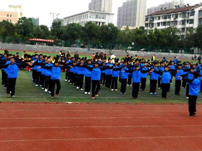 伍琳宣布比赛正式开始,比赛中,各班用整齐的步伐、洪亮的口号、标准的动作、尽情地舞动着健美的身姿,展示着班级的最佳精神面貌。
