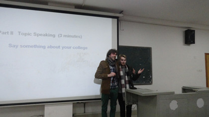 12月19日晚7点半,外语系在主教学楼610举行了第三届口语风采大赛,此次大赛的评委有系主任刘燕,教学主任肖付良,学工主任贺建良,教研室主任周萍、龚文锋,辅导员周春红,外教Stenphen和Mike,外语系全体同学参加,大赛由曹鹏、胡月主持。