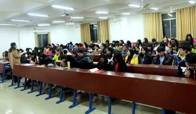 1月14日晚7:00外语系在主教学楼410召开2014年下学期学生工作总结表彰暨期末诚信考试教育大会,参加大会的有系主任刘燕、教学主任肖付良、学工主任贺建良、辅导员周春红老师以及外语系全体学生。会议由学生李晓云主持。