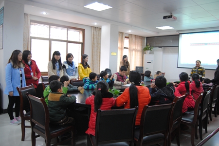 活动中,志愿者与孩子们玩起了互动小游戏,增进彼此的了解,拉近彼此间的距离。然后一对一的进行课业辅导,询问孩子们学习中遇到的难题,为之讲解。辅导过后,志愿者还组织了唱歌,跳舞,画鼻子等游戏。美好的时光总是短暂的,在活动进行了将近两个小时,放学的钟声响起,志愿者们为表现优秀的孩子们颁发礼品。