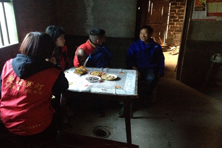 4月12日,财贸系志愿者携带“你点赞,我捐钱”活动中募集来爱心善款的来到位于涟源市茅塘镇的五分村,在村委会萧支书的带领下,志愿者们对当地孤寡老人进行了走访登记。刘爷爷已经七十九岁高龄,只身居住在破旧的小院子里,由于腿脚不灵便,他极少出去活动,也很少与外人沟通。看到志愿者们的到来,他刚开始感到很惊讶,知道团队来意后,老人感动万分,牵住志愿者的手连连说:“我这里挺好,周围邻居都很照顾我,感谢你们的到来,我很高兴”。随后,小队成员一部分帮助老人打扫卫生,清理院子里的杂草;一部分和老人拉家常,真心期望老人安享晚年、幸福安康。离行前,志愿者将“你点赞,我捐款”活动中,募集的300元爱心红包交给了刘爷爷。