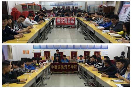 两系学生会主席团成员们在自我介绍后对各学生会开展的活动进行了总结和交流,并突出介绍自身的特色活动。我系学生会也着重介绍了扶青支教、微信点赞、燃灯公益方面的特色活动,与汽车学院学生会主席团展开讨论,并希望两系学生会建立更好的合作关系。