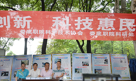 5月19日上午,娄底市“科技活动周”宣传活动在娄星广场隆重举行。我院由党委委员、副院长龙伟带队,院科研处处长刘高永,院科协主席罗正斌、副主席艾长春,院科研处副处长兼学报编辑部主任刘康民及科研处曾芝梅、黄平老师带领学生走上街头开展主题宣传。