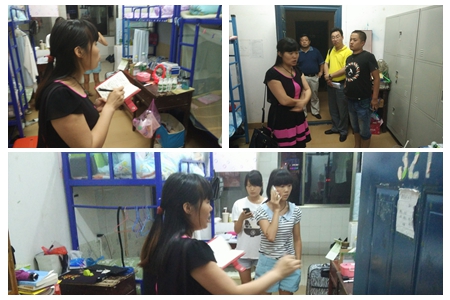 为了进一步加强宿舍纪律管理,严查夜不归宿、串寝等不良现象。 5月21日晚23点30分,财贸系系主任王威然、党总支书记蒋美群、学工主任阳娟、学工干事及学生会干部对女生宿舍8栋部分宿舍进行了突击检查。