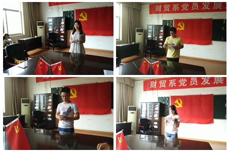 6月17日中午,财贸系预备党员发展大会于实训楼207召开。财贸系党总支书记蒋美群、财贸系系主任、党总支副书记王威然、学生党支部书记阳娟及学生党支部党员出席,全体学生正式党员、预备党员参加。会议由学生党支部宣传委员曾智主持。