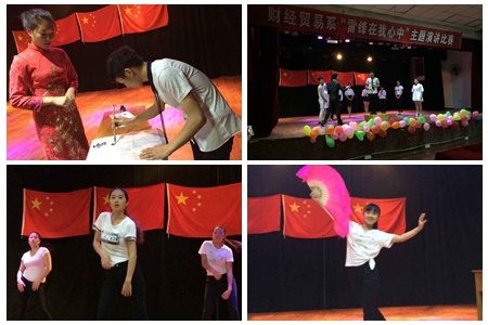 为更好的学习雷锋精神,在实践中传承雷锋精神,6月18日晚上,财贸系于南院礼堂举行了“弘扬雷锋精神,雷锋在我心中”主题演讲比赛。 财贸系主任系王威然、党总支书记蒋美群、学工主任阳娟作为评委参加了本次活动。