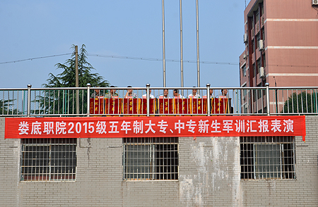 8月25日,我院中专部2015级全体新生列队齐聚田径场,为期10天的军事训练在今天进行成果验收。我院院长雷立成、副院长郭广军,市教育局副局长张怡南、职教科科长罗凤初、资助中心主任李松洲,我院中专部主任邱正文、党总支书记谢新茂、保卫处处长张明及军训总教官邬迎春出席并在主席台就座。22名军训教官,中专部全体班主任、2015级全体新生参加军训汇报表演。仪式由谢新茂主持。