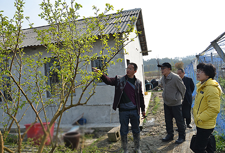 周意坚一行人来到曾玉华老师的特色果树实验基地“金手指葡萄庄园”,遇到了两名“客人”。一个是2012年曾到我院农民创业培训班学习的涟源石马山镇, 龙江村的吴胜文,他目前在家种植了七八亩葡萄,经常到中阳村向曾玉华老师请教技术问题,曾玉华老师还向他免费提供了200余株葡萄苗。吴胜文告诉我们,他们镇上南山村的刘细堂是我院2011级农民创业培训班学员,目前创业非常成功,种植了葡萄、水稻,养了鸡,被评为了涟源市的劳动模范。另一个“客人”是我院2013级工程造价1班的姜正平同学。姜正平告诉我们,他对农业种植非常感兴趣,自己主动来找曾玉华老师学技术,有一段时间就住在实验基地,跟着实践学习。“爸妈有点转不过弯来,但我已经想好了,一是农业发展很有前景,二是我对这个有兴趣,今后就希望做这个事!”姜正平是建筑艺术与设计系的团支部书记,对未来已经有了自己的想法。