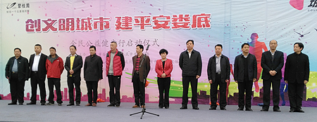 我院500名学生、40名教师参加了健步行活动。大家在“创文明城市建平安娄底”万人签名墙上签字,承诺做“通情达理、文明有礼”的娄底人。启动仪式后,我院学生自觉捡拾现场垃圾。随后,队伍沿沃尔玛、步行街、步步高、娄底宾馆人行路,完成了健步行活动。我院出色的组织工作赢得了主办方和市民的高度评价。
