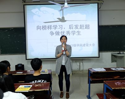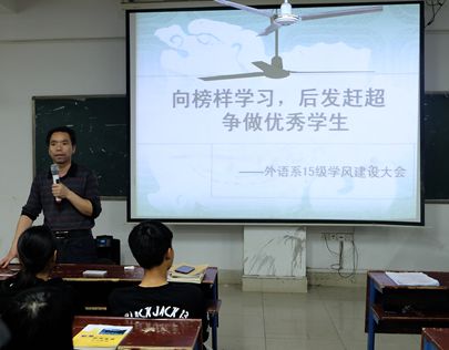 | 4 月 13 日晚 7 : 30 ,外语系在主教楼 410 开展 15 级 “ 学风建设大会 ” 。参加此次会议的有:系主任刘燕、教学主任肖付良、学工主任贺建良、辅导员张杨、谢丹老师及外语系 15 级全体学生。会议由贺建良主持。 首先,肖付良向大家介绍了湖南省英语口语大赛的比赛情况。肖主任对比赛结果进行了公布:在此次比赛中, 15 级商务英语专业谢娉婷同学获得英语专业组第四名,获得二等奖,廖诗婷获非英语专业组的三等奖。随后,肖主任请两位同学向大家进行了图表陈述、英语辩论和情景交流三个环节的展示。选手流利的口语表达能力赢得了大家阵阵掌声。 其次,刘主任针对近期 15 级学生的表现情况进行了点评。根据辅导员、学生会上报的正面、负面典型,她对近期的表现优秀的同学进行了表扬,积极传播了正能量,并对一些违纪违规、不正之风进行了点名批评,并号召同学们向榜样学习,向先进学习,争当先进个人,争创优秀集体。 最后,贺建良传达了学工会议的会议精神,并对近期的主要学生工作进行了部署。 通过此次会议,同学们感受到了榜样的力量,认真反思了过去存在的问题,检查认识了自己的不足。会后,同学们纷纷表示,将牢记领导教导,向先进看齐,奋起直追,争做一名优秀的大学生。( 周叶)