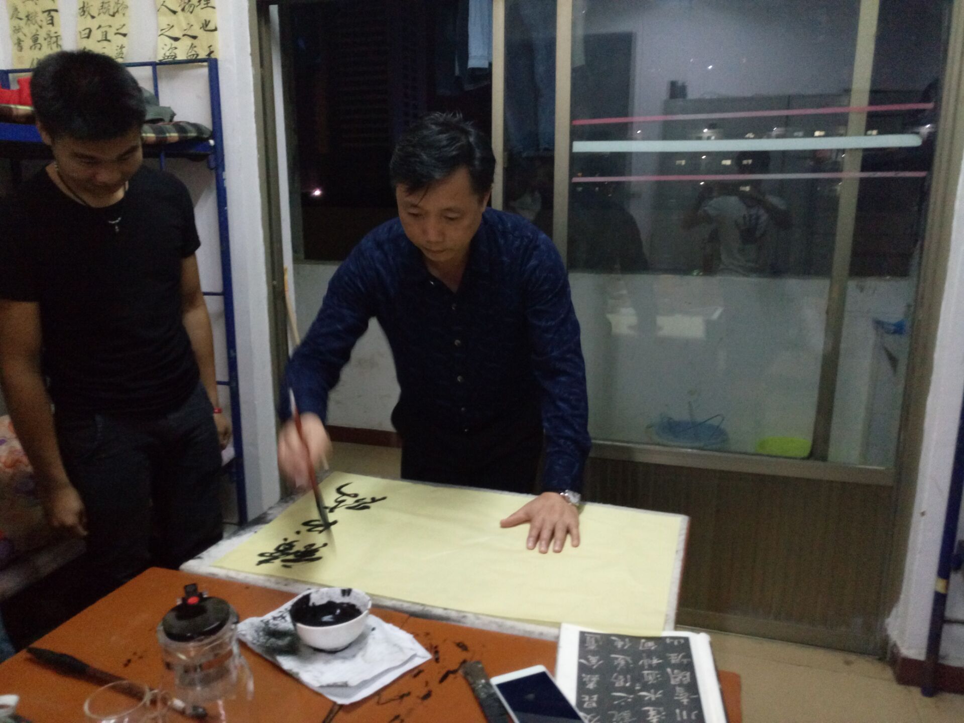 检查中,学生积极配合工作,我们看到了寝室整洁的一面,刘寿松与几位辅导员对寝室进行点评,还为学生寝室亲笔题字:读书破万卷,下笔如有神。简单的一句话,我们耳熟于心,却也是亘古不变的道理,作为园丁,他们竭力培养着我们。(电信系)