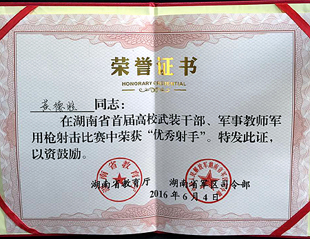 6月4日,湖南省首届高校武装干部、军事教师军用枪射击比赛在湖南警察学院射击馆举行,我院代表队与来自全省36所高校的108名教师队员进行激烈角逐,最终荣获团体一等奖、两个“优秀射手”奖。此为我院首次组队与全省本科、高职院校一同参赛竞技,荣获“优秀射手”奖之一的杨梦辉老师更以90环的优异成绩排名全省第二。