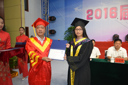 党委副书记王健龙宣读了2016届优秀毕业生表彰决定,党委书记李文莲为省级优秀毕业生颁发荣誉证书,院长雷立成为优秀毕业生代表颁发毕业证书,全体与会院领导为优秀毕业生颁发荣誉证书。我院2016届毕业生在校三年中,努力学习,奋斗不辍,有163人光荣加入中国共产党,6人获得国家奖学金,200人获得国家励志奖学金,46人获得院级奖学金,40人获得湖南省优秀毕业生称号,227人次获得院级三好学生称号,290人获得院级优秀干部称号,32人次获得国家、省级技能竞赛优异成绩。他们是“学以致用自强不息”这一娄职院训的最真实写照,是娄底职院立德树人,教书育人这一宗旨的最完美回报。