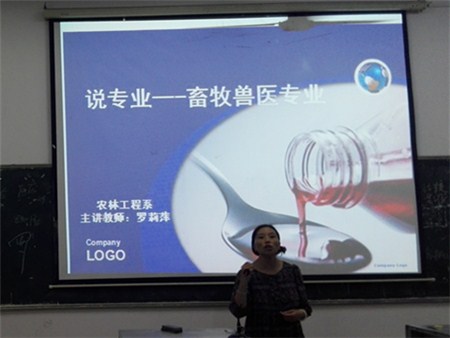在畜牧专场,罗老师向畜牧专业的新生们介绍了本专业的毕业生就业情况同时为大家分析了近几年来畜牧业与宠物行业的发展趋势。之后罗老师为同学们介绍了几种学习方法。
