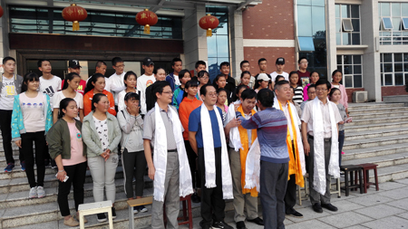 9月20日,来自青海省海南州的38名藏族学子在家长的陪同下,来到娄底职院医学院,开始了求学之旅。他们是中职生,学护理和医学检验专业。院党委副书记王健龙、副院长金建雄、医学院校区领导肖建泳、吴文贵、曾卓和班主任一起对学生以及家长表示了热烈欢迎。藏族学生家长为领导和老师们敬献哈达。领导嘱咐学生们学好知识,掌握好技能,学成后为家乡的医疗事业做贡献。(张波)