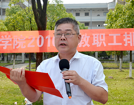 颜彩飞表示,高校经常性开展体育活动,是办学理念成熟的标志,是丰富校园文化生活的必需,是推动学院健康可持续发展的重大举措。本次大赛的开展将进一步促进我院群众性体育活动的蓬勃发展。他希望全体裁判员要履行职责、秉公执法,全体运动员要勇于拼搏、团结友爱。随后,颜彩飞宣布娄底职院2016年教职工排球比赛正式开幕。