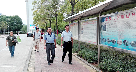 曾丰对我院创建“文明院落”工作给予了极高评价。他表示,首先,学院在创建“文明院落”的相关制度上建立了长效机制,各相关部门各司其职,创建活动开展得有声有色。其次,学院创文氛围浓厚,开展了志愿服务、社区帮扶、关爱老人等很多活动,新闻报道和宣传教育跟进及时,特别是对学生“社会主义核心价值观”及师生文明礼仪的养成的宣传教育,做得很到位。此外,学院的社会管理做得较好,有治安、调解小组,院内景色怡人、秩序井然,给人一种非常安全、温馨的感觉。曾丰认为,对照“文明院落”的创建细则,娄底职院完全能够达到标准。最后曾丰还表示,现在娄底卫校已整合进娄职,要相应地承担起责任和义务,对创文工作予以全力支持。