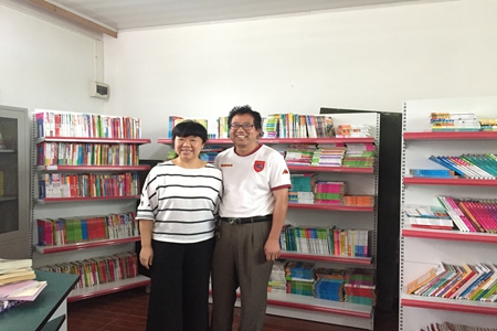 会计学院学工副院长禹云与高桥小学校长陈凤仪在农村书屋合影