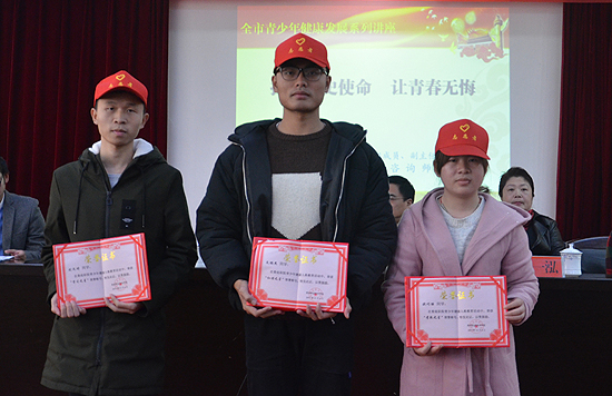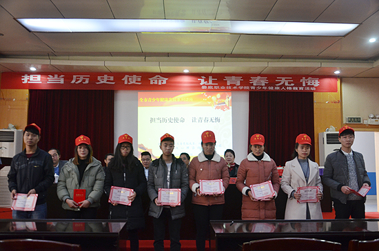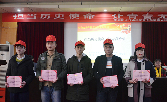 李规宣读了娄底职业技术学院青少年健康人格教育活动获奖名单,与会领导为获奖者颁奖。随后,刘时禄举办了主题为“担当历史使命,让青春无悔”的演讲,呼吁我校青年学生学习中华优秀传统文化,做身心健康,人格健康,全面发展的人,为社会和国家做出自己应有的贡献。(杨泽圳 王思思 肖银意)