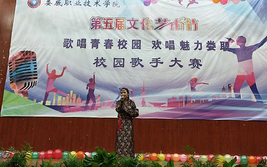 12月14日晚,第五届文化艺术节之“歌唱青春校园,欢唱魅力娄职”校园歌手大赛决赛在新培楼报告厅举办。校团委书记刘媛、宣传部副部长张波、学校艺术团团长刘轶中、学工处阳帆老师、校团委杨瀚儒老师担任大赛评委。