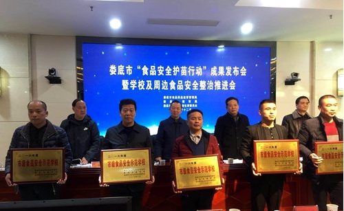 12月19日,在市政府召开的娄底市“食品安全护苗行动”成果新闻发布会暨学校及周边食品安全整治推进会上,我校本部被评为娄底市2016年度市级食品安全示范学校,并现场颁发了“市级食品安全示范学校”牌匾。