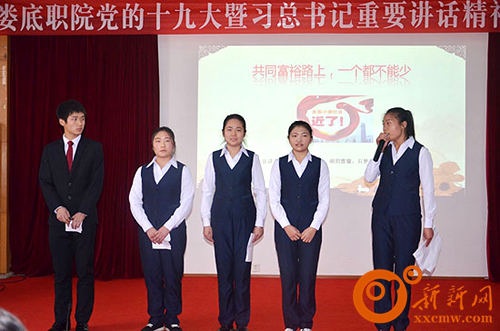 娄底新新网讯 “青年兴则国家兴,青年强则国家强。青年一代有理想、有本领、有担当,国家就有前途,民族就有希望。”12月28日,娄底职院“党的十九大精神暨习近平系列讲话精神”微宣讲比赛决赛在该院主教楼报告厅进行。娄底职院思政课教学部负责人、教师、各二级学院党总支书记、学工主任、师生代表观摩了本次比赛。 图为微宣讲比赛现场 为把全校师生学习贯彻习近平总书记系列重要讲话和十九大精神不断引向深入,贯彻落实全国高校思想政治工作会议精神,娄底职院思政教学课部结合本学期《毛泽东思想和中国特色社会主义理论体系概论》以及《形势与政策》课程的教学,在全校16级学生中开展了“党的十九大精神暨习近平系列讲话精神”微宣讲比赛。本学期伊始,面向2016级全体学生的选拔赛如火如荼铺开,2016级各班遴选出来的3-5人组成宣讲团队在该班《概论》课任课老师的指导下,研究选定宣讲主题,撰写宣讲文稿,再通过各自学院的选拔,最后共11组宣讲团队进入当天的决赛。 图为微宣讲比赛现场 在决赛中,宣讲团队的队员们通过精彩的ppt展示,围绕演讲主题——“十九大精神”暨习近平系列讲话精神的内容及重要意义,立足当下时代潮流,回首我党光辉历程,总结经验,展望未来,将对习近平总书记系列讲话精神的感悟化为或激扬、或恳切、或慷慨的演讲,彰显了师生对讲话精神的深入学习和独特思考。有些宣讲团队还独辟蹊径,将歌舞展示、新闻采访引入了宣讲过程,让全体观众耳目一新。 经过评委老师的综合评比,16商英2班宣讲团队荣获一等奖,护理1603班、16软件1班获得二等奖,护理1601班、16会计8班、16文秘1班获得三等奖,16应英2班等五个班级获得优胜奖。贺山青、李翠兰、胡星星、谭素桂、陈满玉、肖希蓉、彭军获得优秀指导老师奖。思政课教学部主任周旺东为选手的表现进行了点评。 本次比赛由娄底职院思政课教学部、学工处、宣传部、各二级学院主办,由思政课教学部马克思主义理论教研室具体组织实施。(通讯员:刘艳 钱琳 杨克邪)