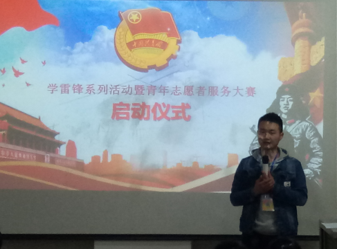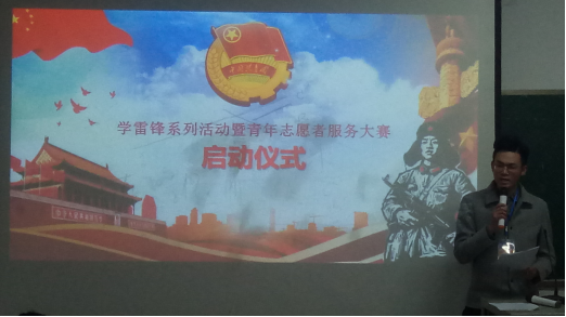 3月8日下午18:00,娄底职业技术学院校团委学社联在主教楼210教室召开2018年“学雷锋动员大会暨青年志愿者服务项目大赛”启动仪式。本次会议由团委学生副书记王子豪主持,出席本次会议仪式的有团委副书记游骏、团委指导老师李明、杨倩赟以及各二级学院团副、校团委学社联全体干部。