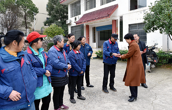 李文莲一行看望了办公室、安保物业值班人员、宿管值班人员、网络后勤水电卫生值班人员,并专程前往五年制高职部、医学院校区、南校区、附属医院等看望慰问。每到一处,李文莲热情地慰问值班工作人员,“大家一年的工作辛苦了,节假日也坚守岗位,非常不容易。”李文莲指出,学校的发展离不开每一位教职工的努力,离不开每一个基层岗位的工作,她代表学校党委、行政祝大家新年好!祝福大家在新的一年身体健康,工作顺利,阖家幸福,日子越过越红火,并送上了新年慰问红包。(欧阳琦)