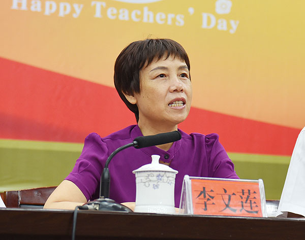 9月10日,我校在学校礼堂隆重集会,举行庆祝第35个教师节暨暑期培训成果汇报会,全体校领导、中层干部、教职工代表参会。李文莲发表讲话。会议由校长朱忠义主持。