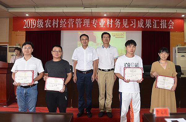 评委老师们从汇报内容、现场表现等方面综合考评,最终,农管3班刘志林、农管2班邱燕芝获一等奖,农管1班易强强、农管4班李俊峰、农管3班吴芝、农管2班周品获二等奖,农管1班赵勇、农管2班谢威、农管1班肖亮、农管4班方雄、农管3班陆苗、农管4班肖星城获得三等奖。与会领导为获奖者颁奖。