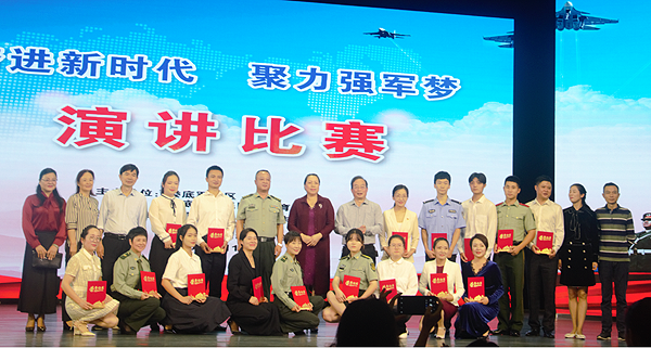 “奋进新时代,聚力强军梦”主题演讲比赛由娄底军分区,娄底市全民国防教育委员会主办,娄底军分区政治工作处、娄底市全民国防教育委员会办公室承办,由娄底市国防教育协会具体执行。副市长李有才、娄底军分区政治工作处主任王学军、市教育局长李耀文、市妇联主席李梯华等领导出席了活动。我校工会副主席刘轶中担任评委之一。(廖娜)