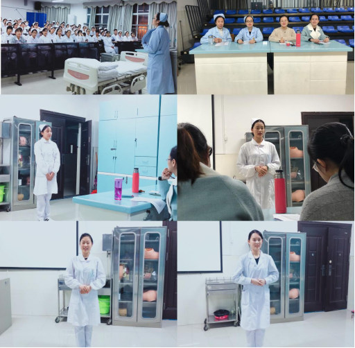 为了确保本次大赛顺利进行,护理学院教学办在学院领导的大力支持和指导下,实训中心和学工办通力协作,精心组织,统筹规划,悉心安排技能大赛的每一个环节。前期积极动员护理学院全体学生自主报名,经过班主任、辅导员和核心课程任课教师进行选拔和推选到学院,再精心组织安排具有丰富带赛经验的教师对参赛选手进行赛前培训,学生自主练习两周后参加比赛。本次大赛共分为两个环节,分别是面试环节和竞赛环节,其中面试环节主要考核选手的气质形象、护理礼仪仪态、表达沟通能力;竞赛环节包括了“理论考试”部分和“临床护理技能操作”部分,主要考核选手的理论基础水平、评判性思维能力、护理基本技能与操作水平、沟通能力和赛场应变能力等。