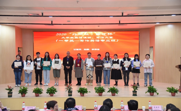 10月25日,2020“外研社·国才杯”大学生英语演讲、写作大赛(高职高专组)湖南赛区复赛在湖南外国语职业学院顺利举办。共有来自40所院校的149名选手进入本次演讲、写作大赛复赛,他们竞技语言表达、交流多元思维、探索书面沟通、弘扬时代新知,彰显了新一代大学生兼具家国情怀和全球视野的时代风采。在文化传播学院院长刘燕、教学院长肖付良的热切关心和鼎力支持及指导老师谢杰、谢花萍、龚文锋的精心指导下,我校学子取得了优异的成绩。其中谢杰老师指导的18应教3班彭梓甜同学获演讲比赛一等奖;谢花萍老师指导的18应教3班姚佳同学获二等奖;龚文锋老师指导的18商英1班甘慧芳同学获写作大赛(专业组)一等奖、委培护理1901班段嘉晖、覃雨清同学分别获写作大赛(公共组)一等奖和三等奖。