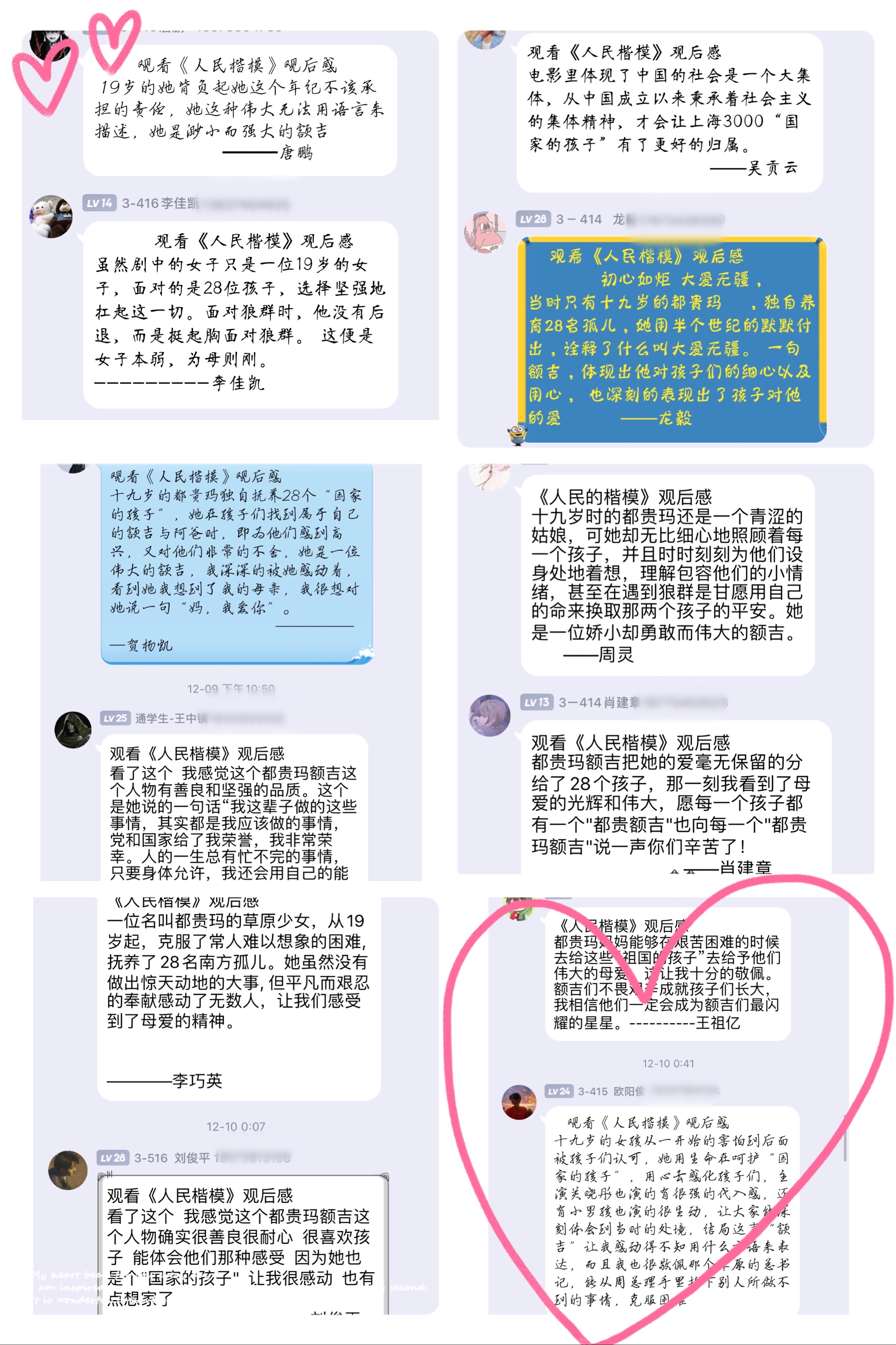 学子张巧也表示都贵玛的事迹深深触动了她的内心,同样的年纪她刚刚迈进大学的校门,自己的19岁还在父母的呵护下成长,而19岁的都贵玛已经为国家做出了那么大的贡献,震撼感动过后张巧表示要努力学好自己的专业,让自己成长为一个优秀的人,希望三年后能用自己的能力赢得老师的认可、父母的掌声、社会的尊重,并为国家奉献出自己的微薄之力。