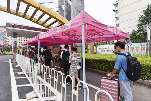 校内的红马甲也是一道靓丽风景,他们是学生志愿者团队,负责为新生及家长答疑解惑,给予帮助,获得学生及家长的一致好评。