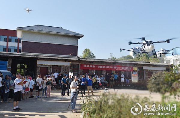 在农林实训基地,师生们饶有兴趣地聆听无人机农业应用的有关知识讲解,现场观摩了无人机的操作,起飞、盘旋、喷洒。有的师生在科普宣传牌前驻足,仔细观看着庭院果树栽培、用手机开展电子商务的宣传内容;有的仔细阅读着农业技能宣传手册,老师现场解答有关疑问。