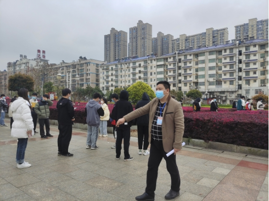 “有困难,不要怕,跟辅导员说。”辅导员周辉华穿着厚重的隔离服,仔细登记核实师生身份信息,只为守护校园平安。他抢抓疫情防控的“黄金期”,连续奋战,用责任践行初心使命。除担任核酸检测信息登记员外,他还在现场引导师生、解答疑问、维护秩序,提高本次核酸检测效率。此外他还通过QQ、微信平台开展线上心理咨询和情绪疏导,安抚学生情绪,调整学生心态,引导学生理性面对疫情,传递抗疫精神。每天早上也会坚持去教室查堂、查看学生们的口罩佩戴情况等。