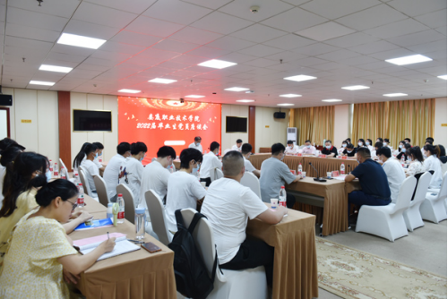 在6月24日上午举行的2022届毕业生党员座谈会上。党委书记朱忠义为40余名毕业生党员代表送上毕业寄语,来自各学院的10位优秀毕业生党员分享了自己的成长感悟,感念母校恩情,畅谈家国情怀。